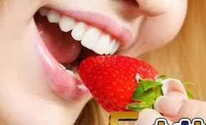 تعمل الفراولة على تبييض الأسنان وهي وصفة رائعة حيث يمكن هرس حبتان متوسطتان من الفراولة ووضعها