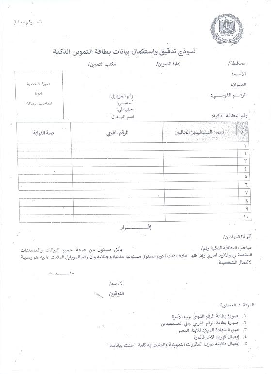 بطاقة التموين الكترونيا ومن خلال مكاتب التموين