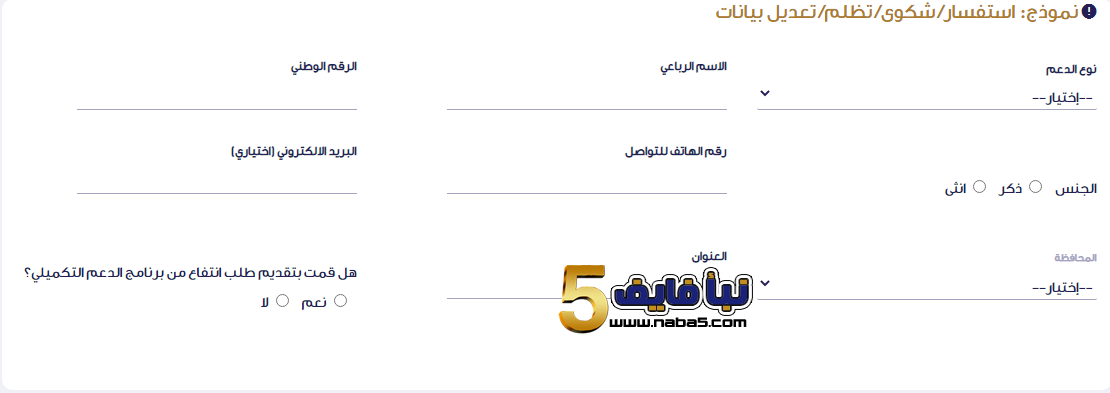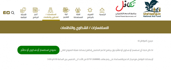تقديم طلب اعتراض على عدم وصول الدعم النقدي للعمال المياومة أو اي استفسار آخر