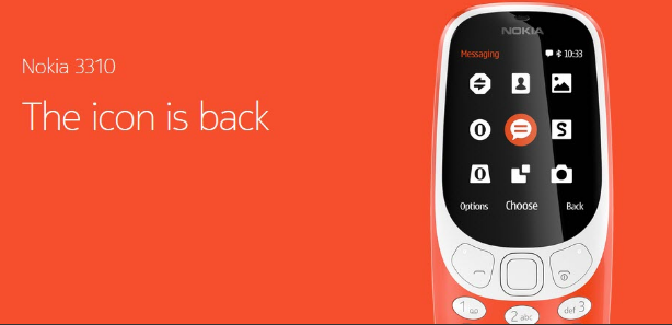 أعلنت الشركةالفلنلديةوبالتعاون مع شركة HMD GLOBAL بشكل رسمي عن اطلاق هاتفها الجديد نوكيا 3310 بتصميم جديد كلاسيكي، ونحيف ايضاً واخف اصدار من الأصدار السابق الذي عرض قبل 17 عشرا ً عاما.