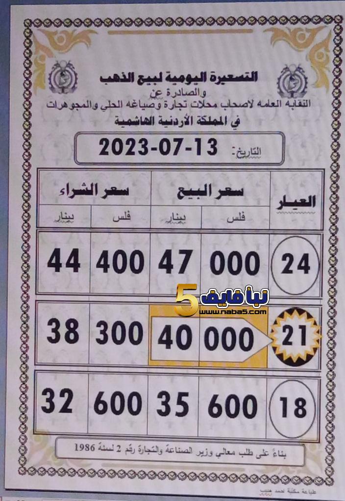 حيث بلغ سعر غرام الذهب لعيار 21 والذي يعد الأكثر مبيعا لدى الأردنيين، عند 40 دينارا و 38.3 دينار لجهة البيع.