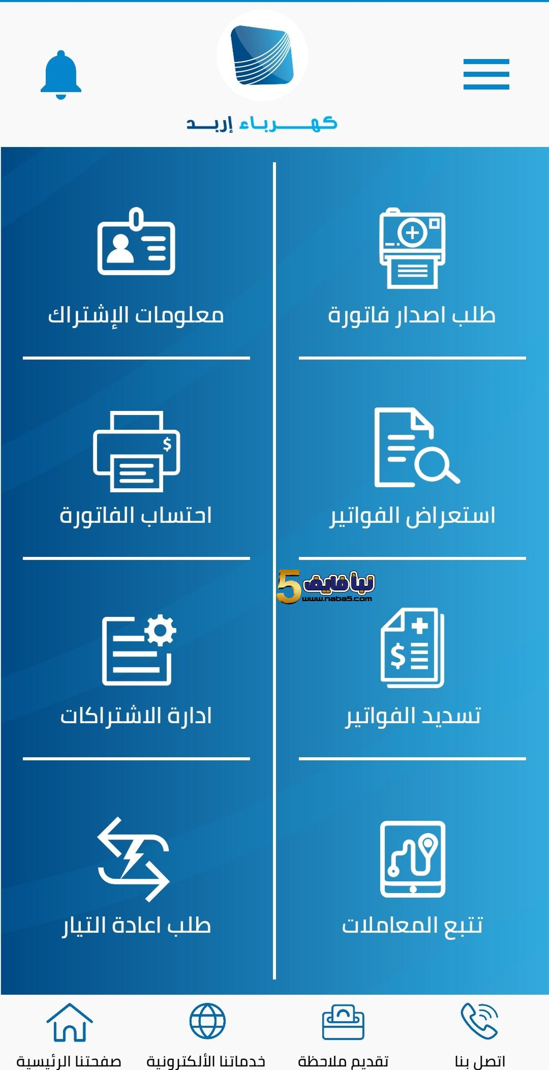 1. بعد تحميل التطبيق اضغط على زر احتساب الفاتورة.