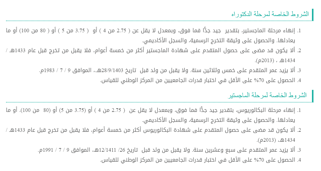 شروط حملة الدكتوراة والماجستير
