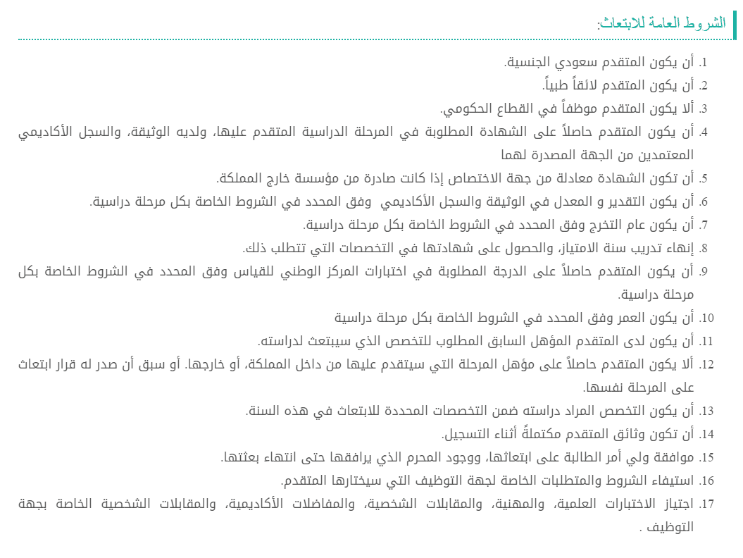 والشروط العامة التي حددتها وزارة التعليم ممثلة وكالة البعثات
