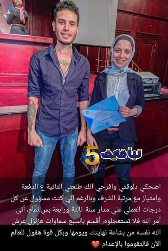 وفي وقت سابق ، نشر نشطاء على مواقع التواصل الاجتماعي رسالة هدد فيها الطالب الجامعي إسلام محمد زميلته سلمى بهجت بطعنات عديدة.