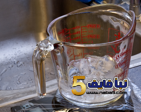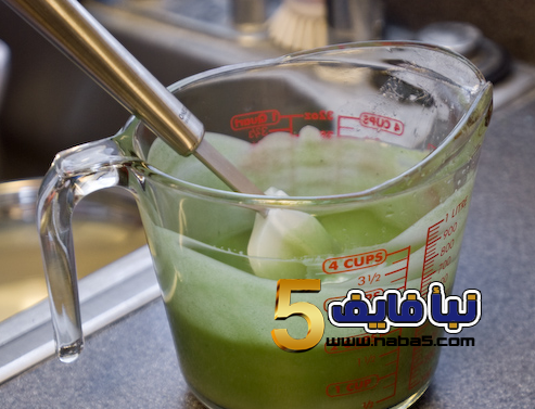 - من ثم نضيف الخليط المكون من الصودا والماء على المواد الهنية ونضعهم في الخلاط، نترك الخليط لخمسة دقائق كما بالشكل.